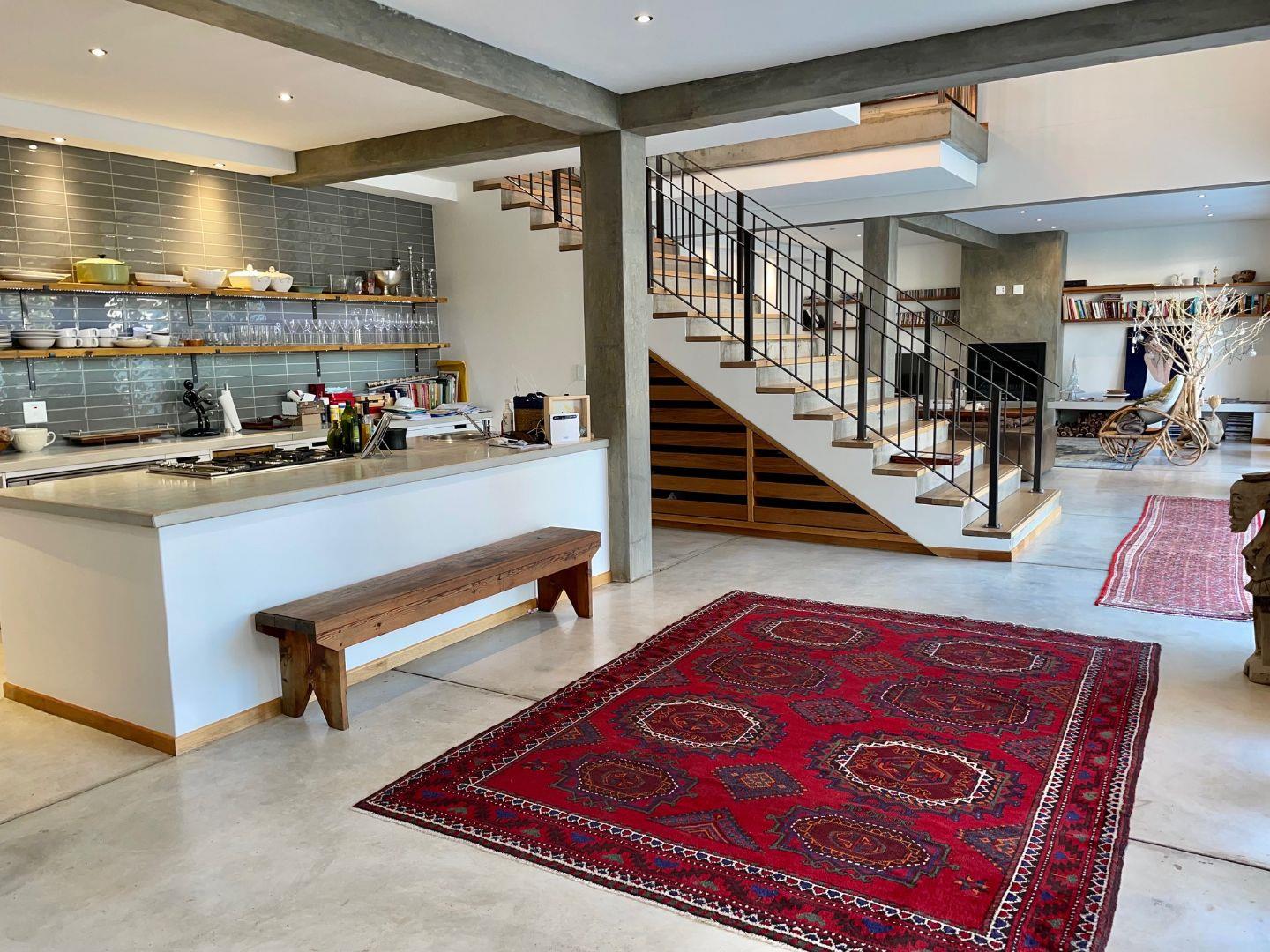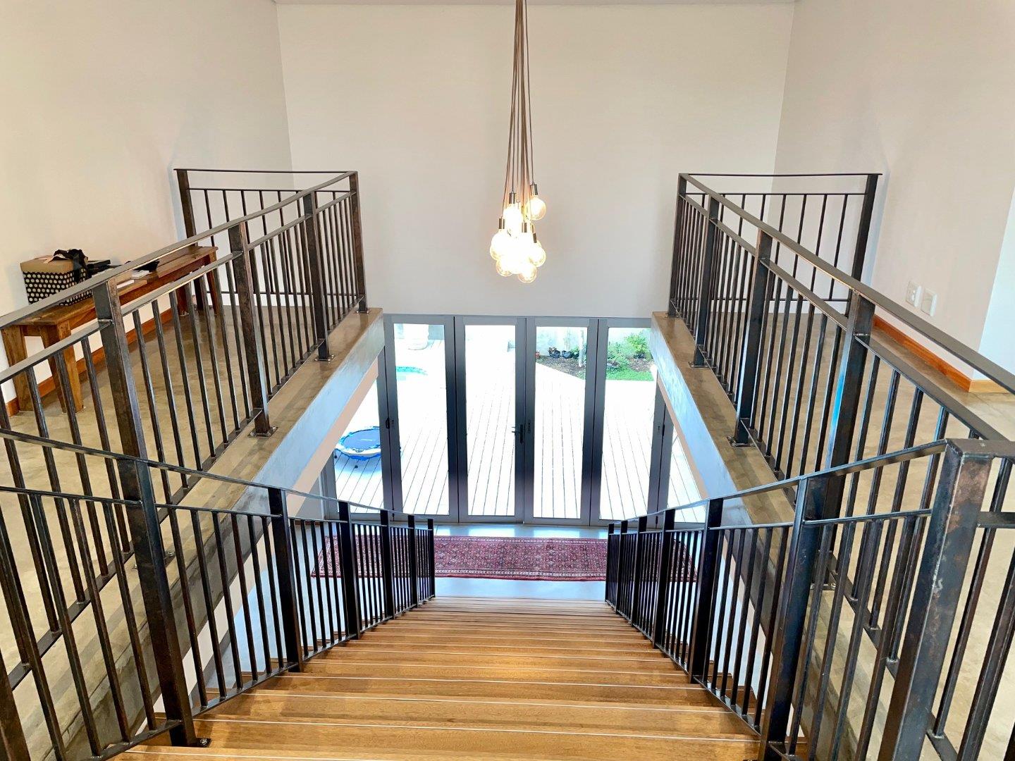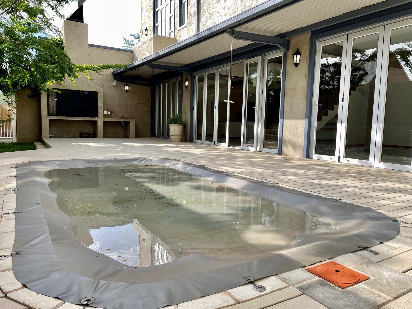 On the ground floor, an open plan lounge with a fire place, dining room and modern kitchen with a gas stove, all opening with stackable doors to the entertainment area, sparkling pool, BBQ and garden.