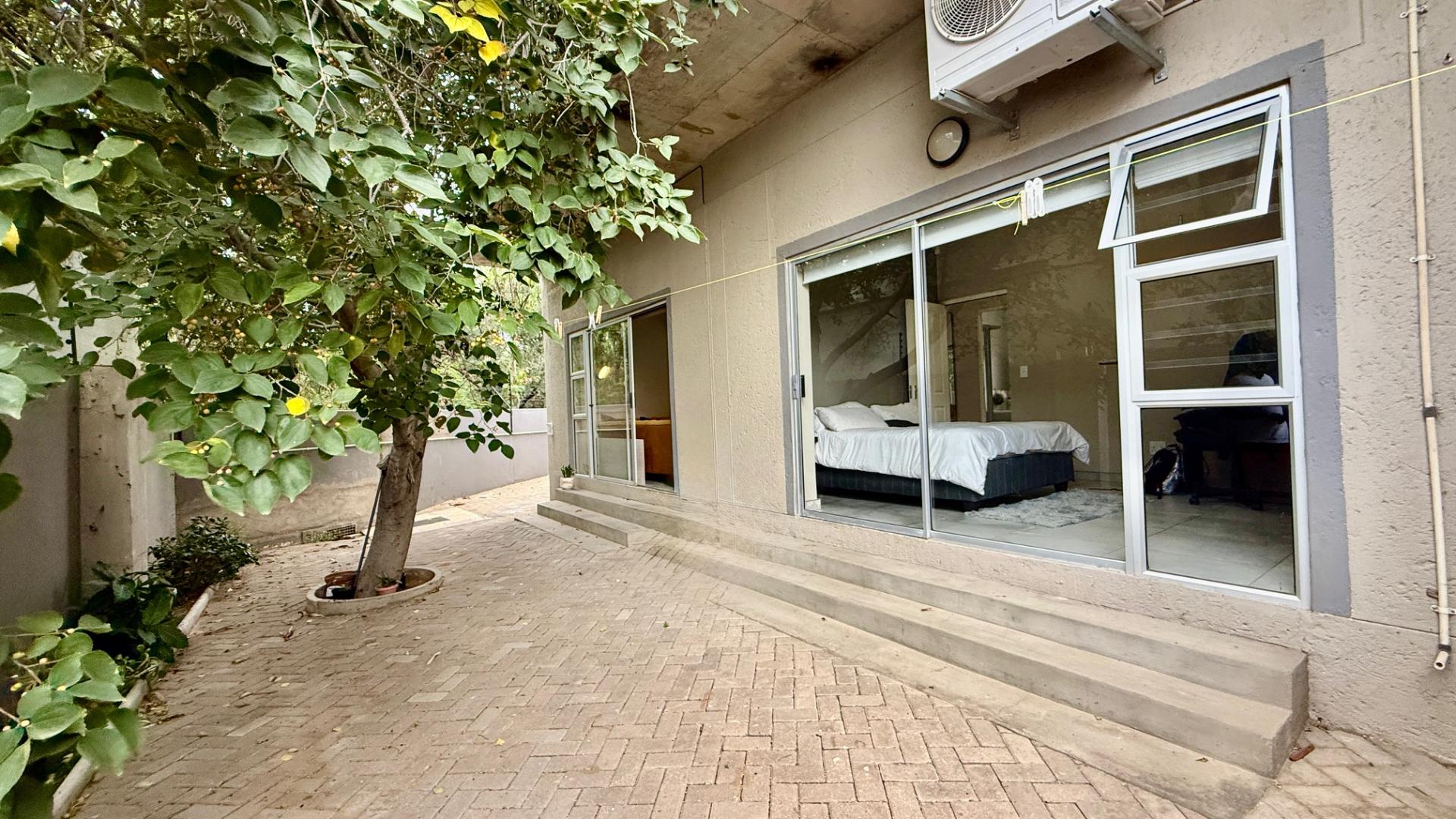 A private garden. 2 AC's, tiled throughout, blinds.