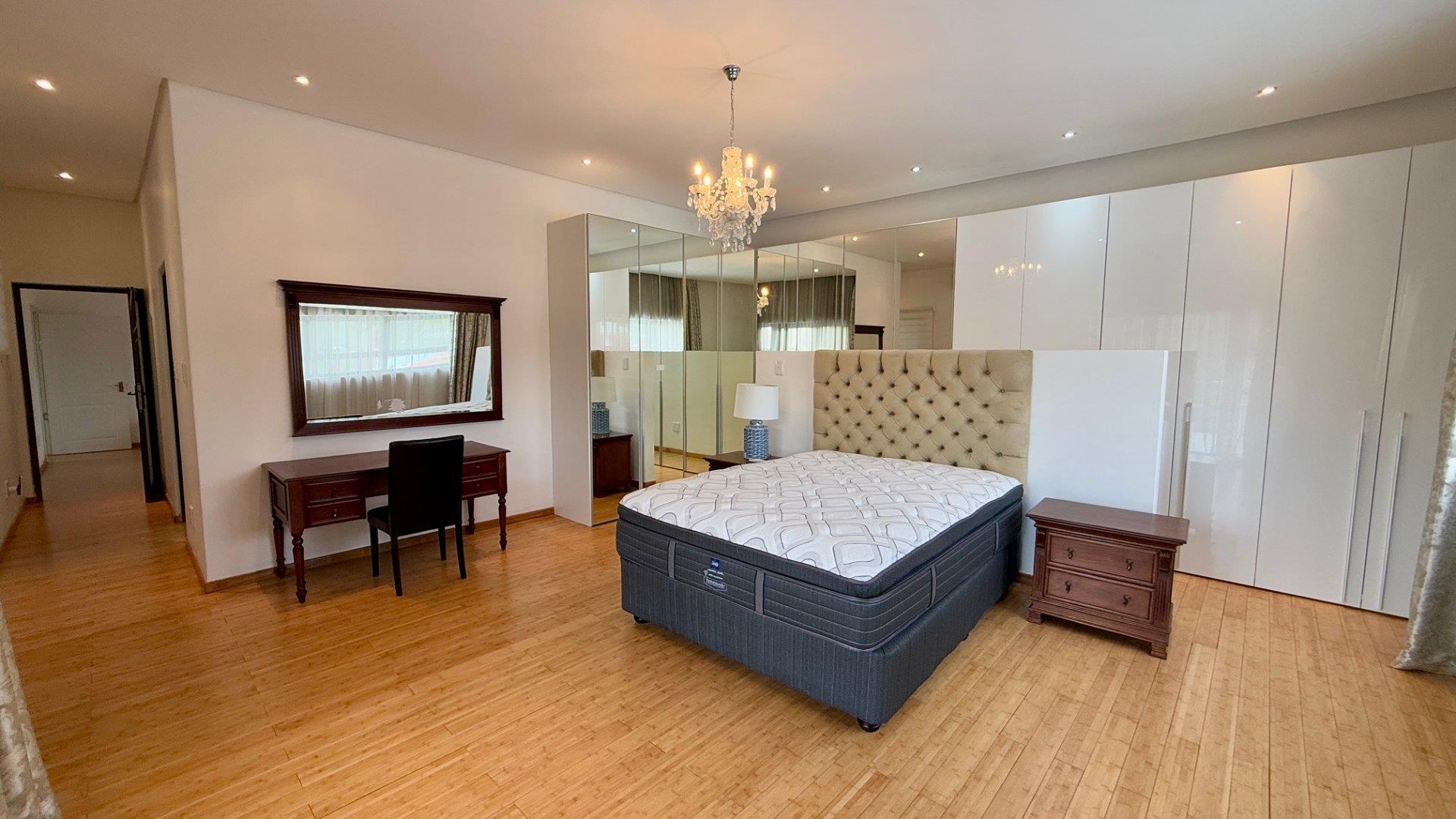 Upstairs 3 bedrooms, main with a private lounge, bathroom and dressing room, 1 bathroom, study, gym, ironing room and a family room.
