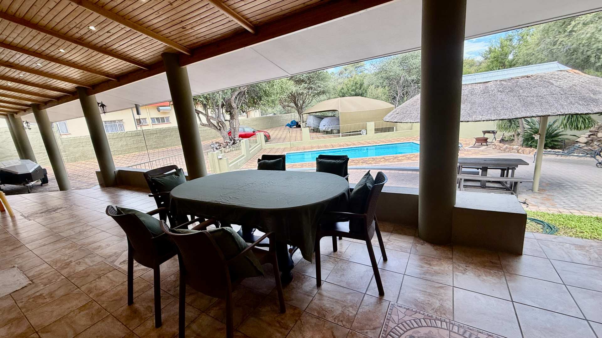 CLOSE TO AL AMENITIES! This spacious well maintained family home of approx. 400m2 underroof, includes a big 89 m2 underroof entertainment area with an outside kitchen and BBQ area, ideally to spend long hours with family and friends, overlooking a big pool, small thatch and the low maintenance garden.