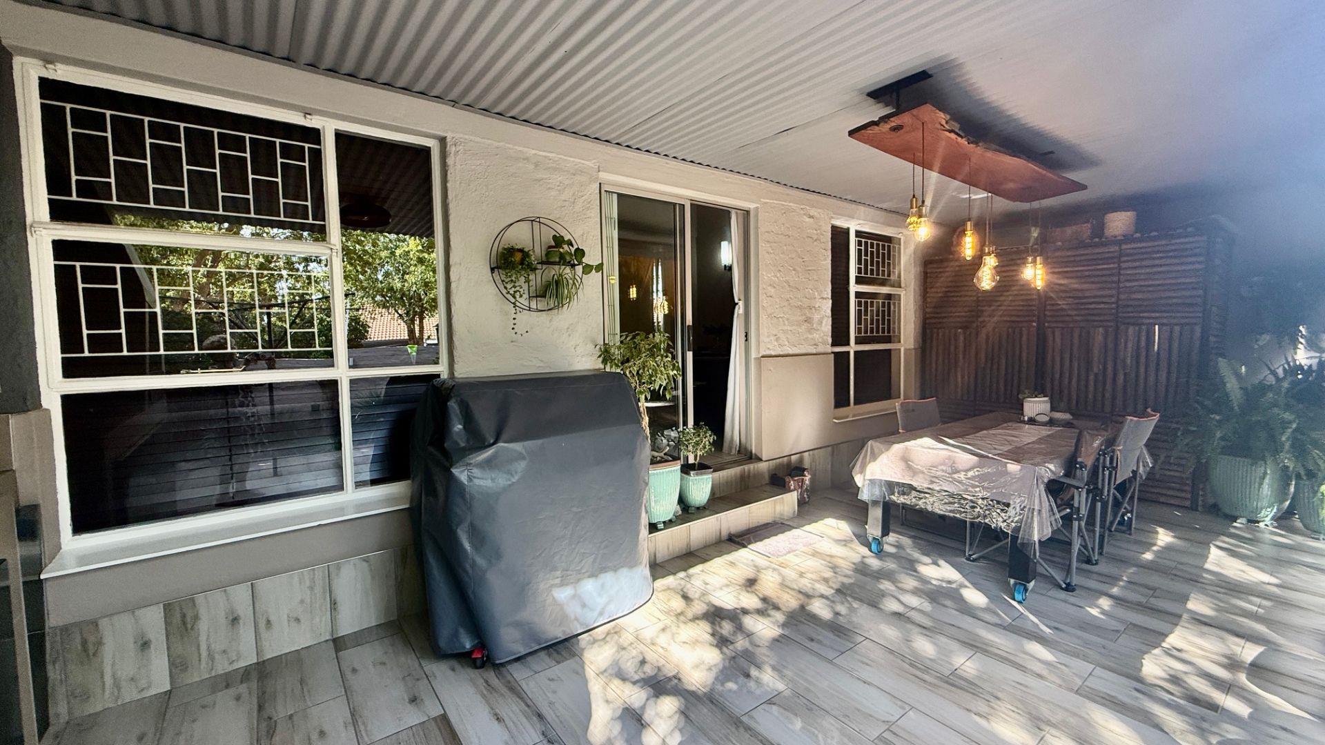 A covered patio with BBQ and a small, neat garden, and a lovely ambiance, allows family and friends to enjoy beautiful sunsets.